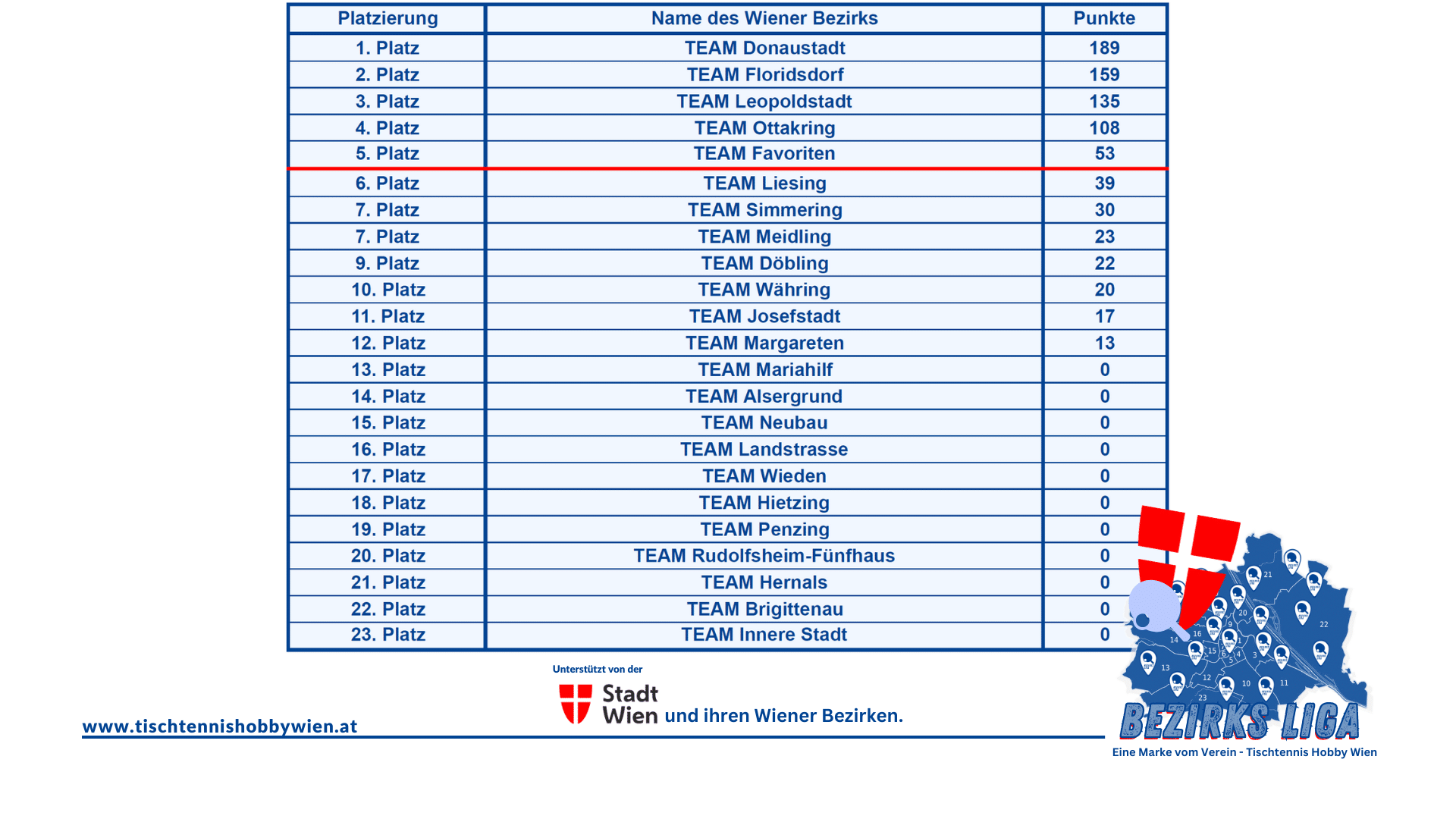 Anmerkung: Der Verein Tischtennis Hobby Wien behält sich das Recht vor, Anmeldungen ohne Angabe von Gründen abzulehnen. Die Wiener BezirksLiga wurde ins Leben gerufen, um die Tischtennis-Szene in Wien zu aktivieren. Dabei stehen nicht nur der Sieg, sondern auch Spaß, Fairness und der gesellschaftliche Aspekt im Mittelpunkt. Abfällige Bemerkungen, rassistische Äußerungen, Beschimpfungen oder respektloses Verhalten gegenüber anderen Teilnehmer*innen sind streng untersagt und führen zum sofortigen Ausschluss aus der Liga. Zudem wird die betreffende Person von allen Kanälen von Tischtennis Hobby Wien entfernt oder gesperrt. Mit dieser Initiative streben wir die Vernetzung verschiedener Spielgemeinschaften, Tischtennisgruppen und Vereinsspieler*innen an, um diesen Sport gemeinsam stärker in der Öffentlichkeit zu präsentieren.